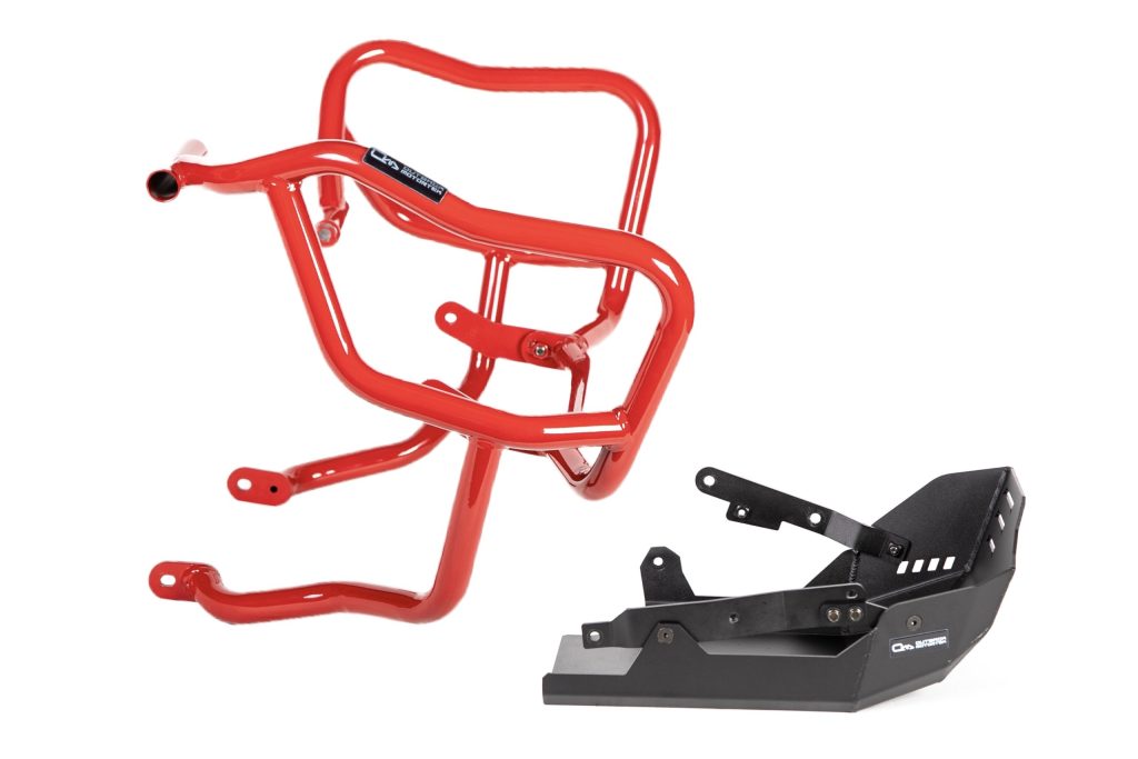 Ducati has returned with a big bang! Their new V4 touring machine is ready to take on the world with our crash bars, skid plate and luggage rack platform.