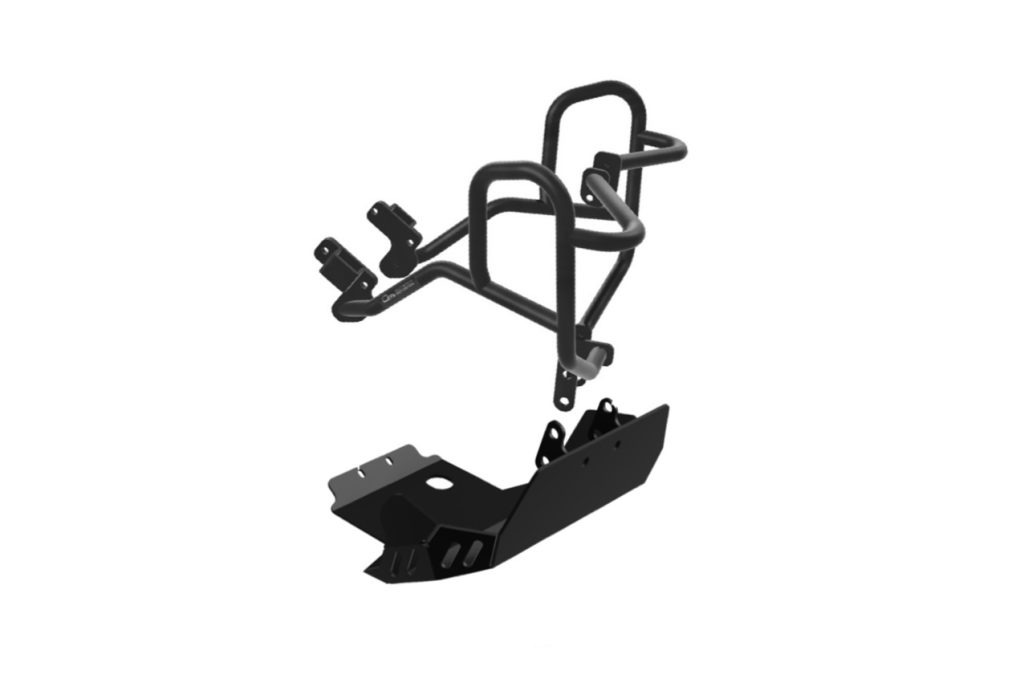 The crash bars will protect the fairings and the radiator. They're also an excellent option for mounting extra lighting and/or small luggage bags. Included in the combo is also a strong skid plate which offers full protection to the badly exposed oil pan of the KLX300.