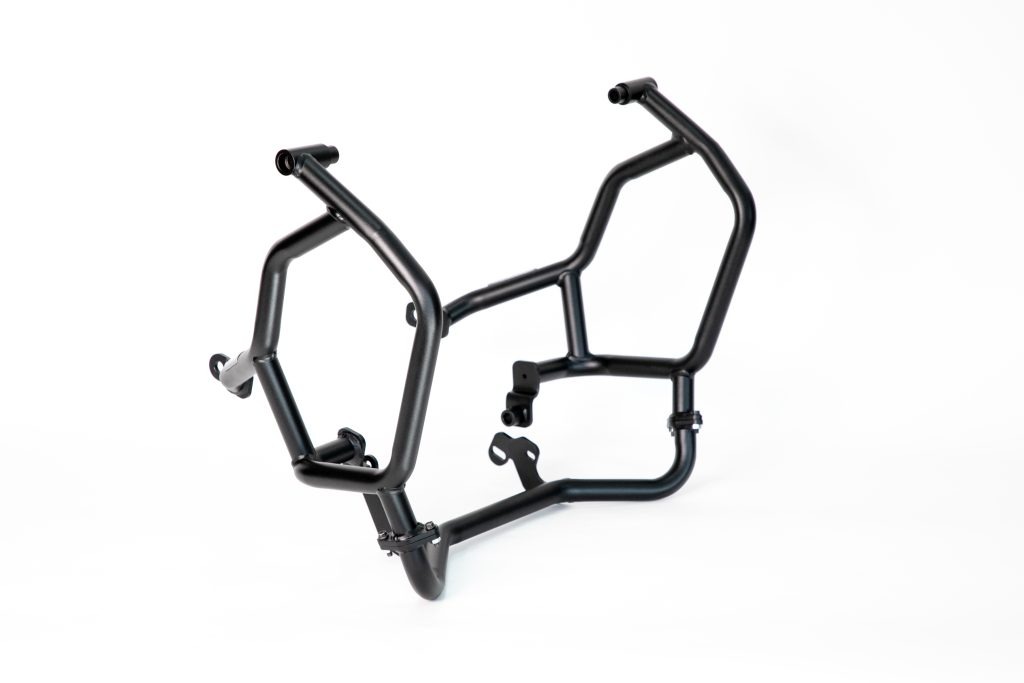 Fully frame mounted, the Kove 800X skid plate not only offers full protection to the front and bottom of your engine, but it also helps with energy absorption from potential impacts, by transferring and sharing it with the whole bike. This allows for more impact, with less damage.