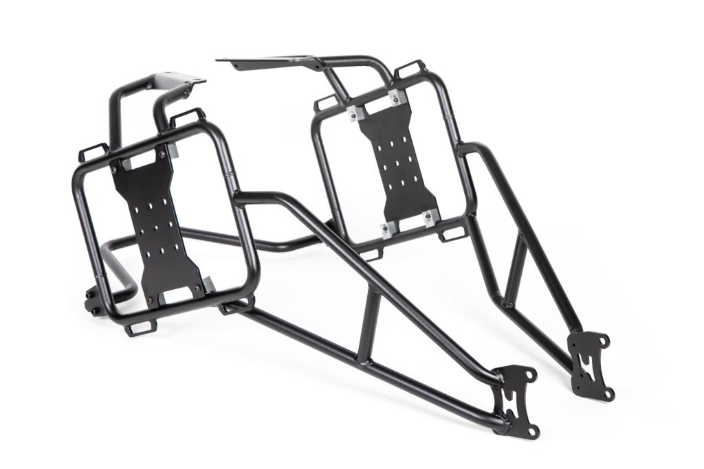 Our pannier racks are constructed of mild steel, which is what makes them robust enough to hold your luggage and absorb impact from drops and tip overs if things go south! Additionally, they have standardised dimensions [350mm (L) x 250 (H) made of 18mm diameter tubing] which gives you the option of mounting a wide range of panniers. The pannier racks for the CFMoto Ibex 450 are available with an asymmetrical design with (TBA)cm in width once installed!