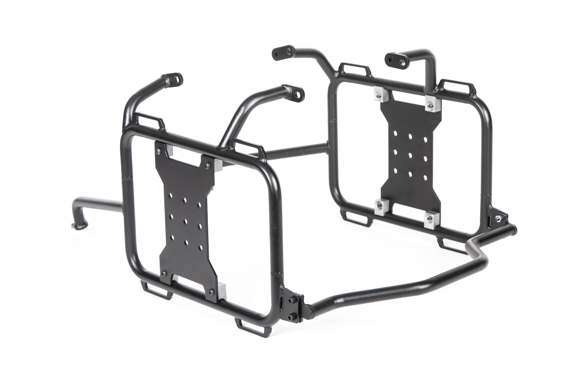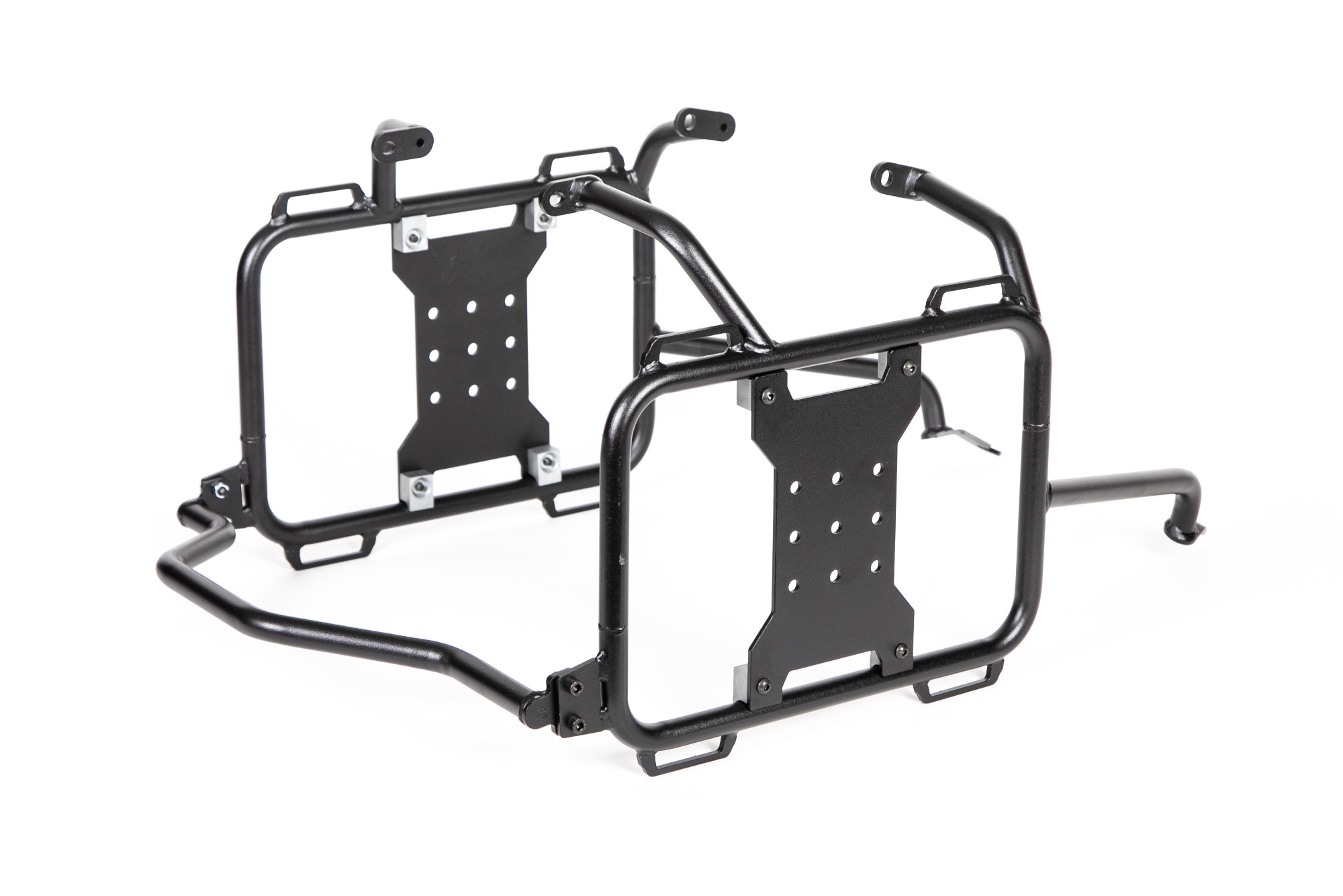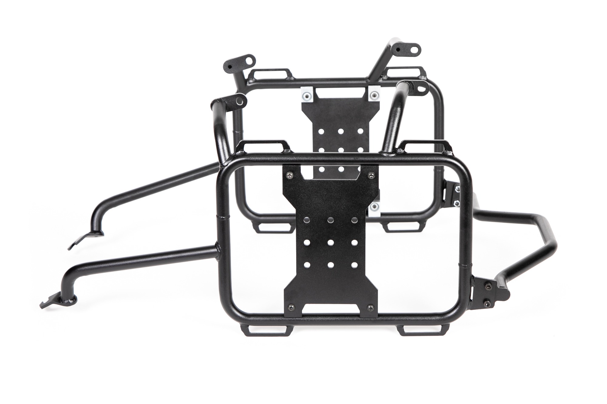 Designed and manufactured by Outback Motortek. The new X-Frames are the most universal and functional side pannier frames yet, allowing simple, secure mounting of Rotopax, hard panniers and soft luggage.
