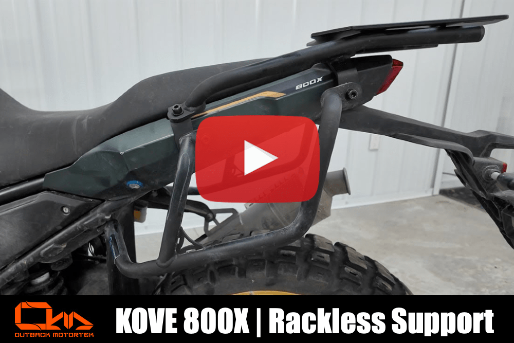 A simple and lightweight side luggage support, designed to hold your soft luggage and keep it from bouncing and folding under your seat, and coming in contact with the rear wheel or the exhaust, on your Kove 800X.