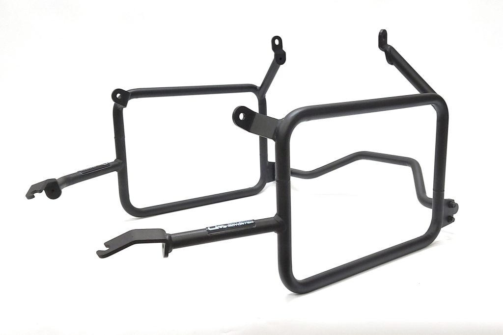 Designed by Adventure Moto Australia and manufactured by Outback Motortek. The new X-Frames are the most universal and functional side pannier frames yet, allowing simple, secure mounting of Rotopax, hard panniers and soft luggage.
